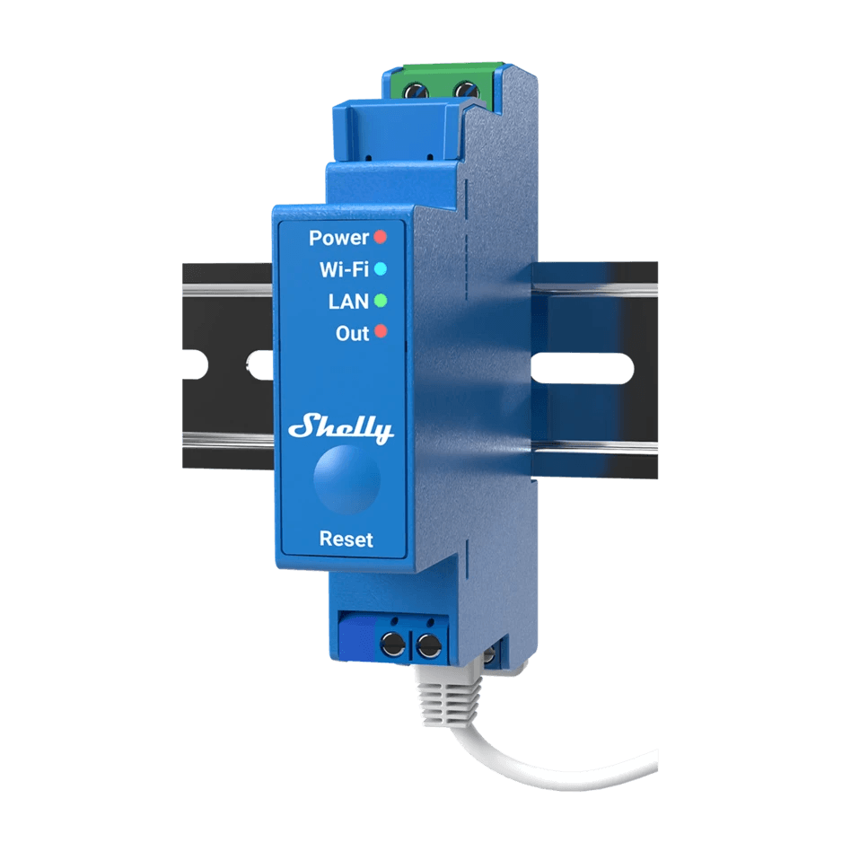 Shelly Pro 1 je 1kanálové relé podporující až 16 A pro profesionální automatizaci světel a spotřebičů v obytných nebo komerčních aplikacích. Je vybaven bezpotenciálovými výstupy (suché kontakty).Další informace