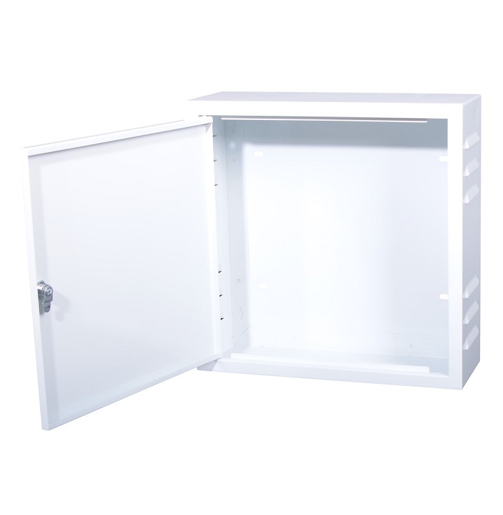 Celokovová uzamykatelná rozvodná skříň s plným zadním čelem pro instalace prvků CCTV, TV, SAT nebo WiFi pro vnitřní použití s rozměry 400x400x140mm disponuje několika vylamovacími otvory na horní a spodní straně. Uchycení na zeď 4 montážními otvory na ...Další informace