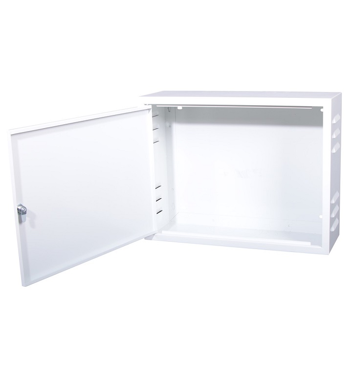 Celokovová uzamykatelná rozvodná skříň s plným zadním čelem pro instalace prvků CCTV, TV, SAT nebo WiFi pro vnitřní použití s rozměry 520x400x180mm disponuje několika vylamovacími otvory na horní a spodní straně. Uchycení na zeď 4 montážními otvory na ...Další informace