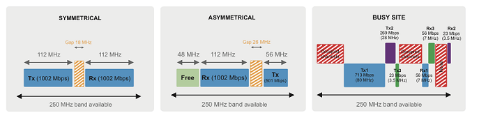 RAy3 je optimalizován na maximální využití spektra a velké množství spojů na stožáru. Efektivně umí využít celou šířku pásma s možností asymetrického nastavení kanálů 3.5 až 112 MHz. Minimální mezera mezi okraji kanálů je 18 MHz, její šířka i umístění jsou sw nastavitelné. Navíc splňuje normu pro licenční pásma.
