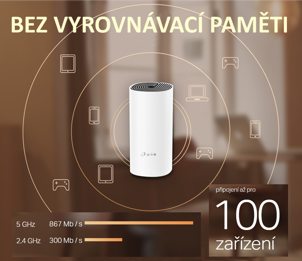 V balení se nachází tři kusy Wi-Fi routeru Deco M4. Zbavte se míst bez signálu. Bezdrátový signál 802.11 a/ac/b/g/n o rychlosti až 1167 Mbps. Dual-Band anténa (2,4 GHz 300 Mbps + 5 GHz 867 Mbps). Porty 2 x Gigabit Ethernet, podpora IPV4 a IPV6.Další informace