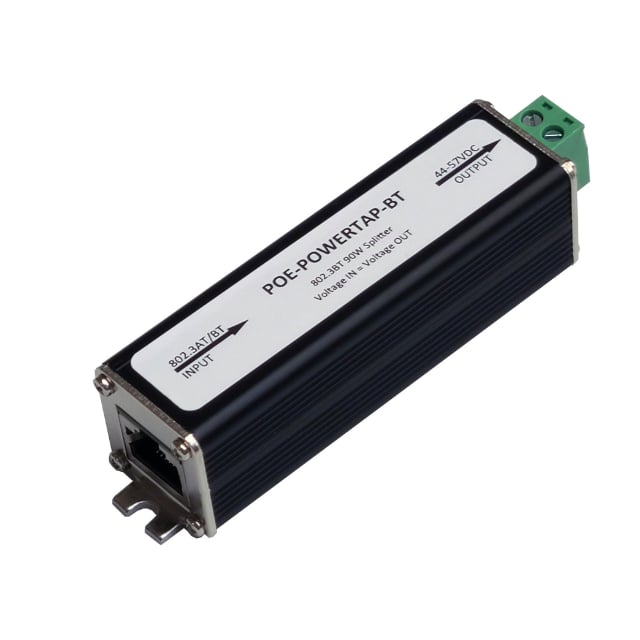 PoE konvertor POE-POWERTAP-BT je zařízení, které umí z aktivního PoE vytořit 48 VDC výstup pomocí dvoupinové svorkovnice. Maximální výstupní výkon je stanoven na 90 W. Zařízení je kompatibilní s 802.3af/at/bt a 2párovým nebo 4párovým pasivním PoE vstup...Další informace