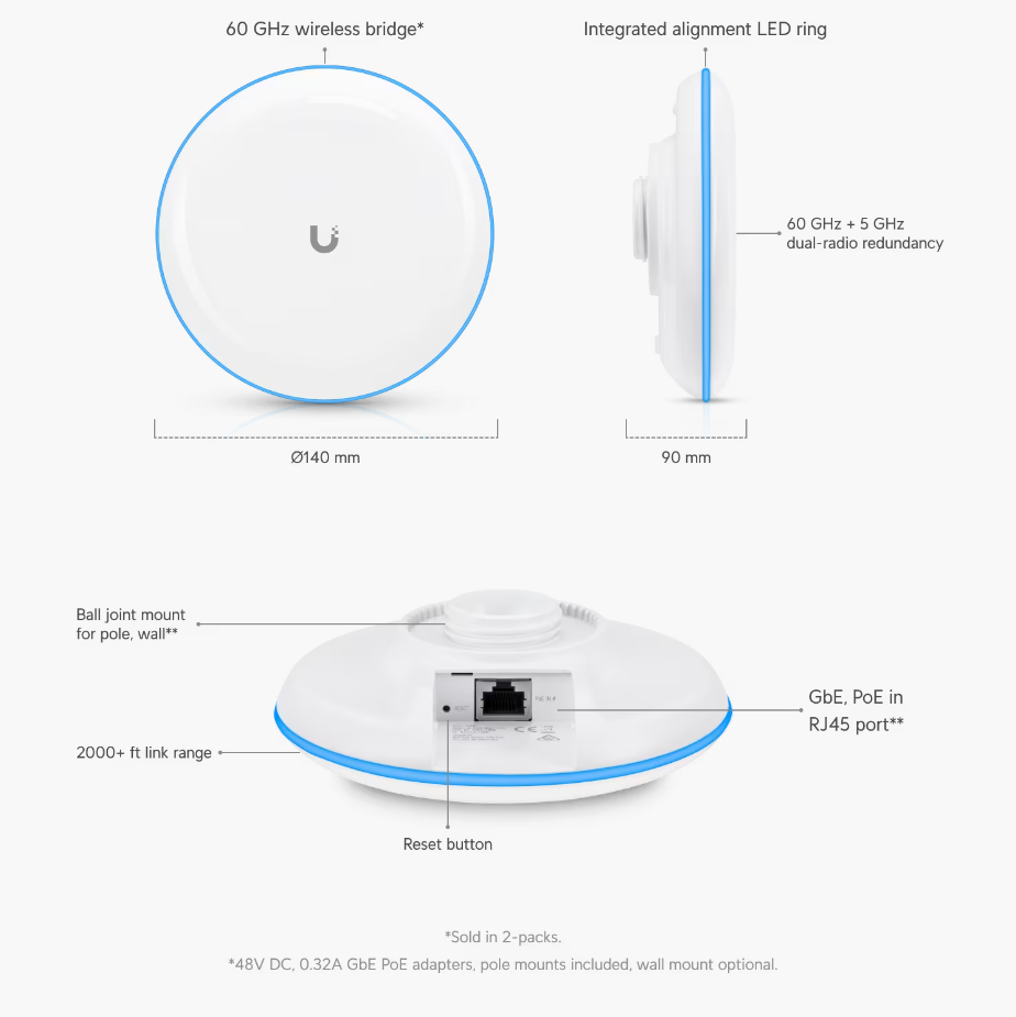 Ubiquiti UniFi Building Bridge je 60 GHz point-to-point pojítko s 5 GHz zálohou pro rozšíření sítě například o sousední budovu. Propustnost pojítka je 1.7 Gbps+ s maximálním dosahem 500 m a správou nebo monitoringem přes UniFi Controller.Další informace
