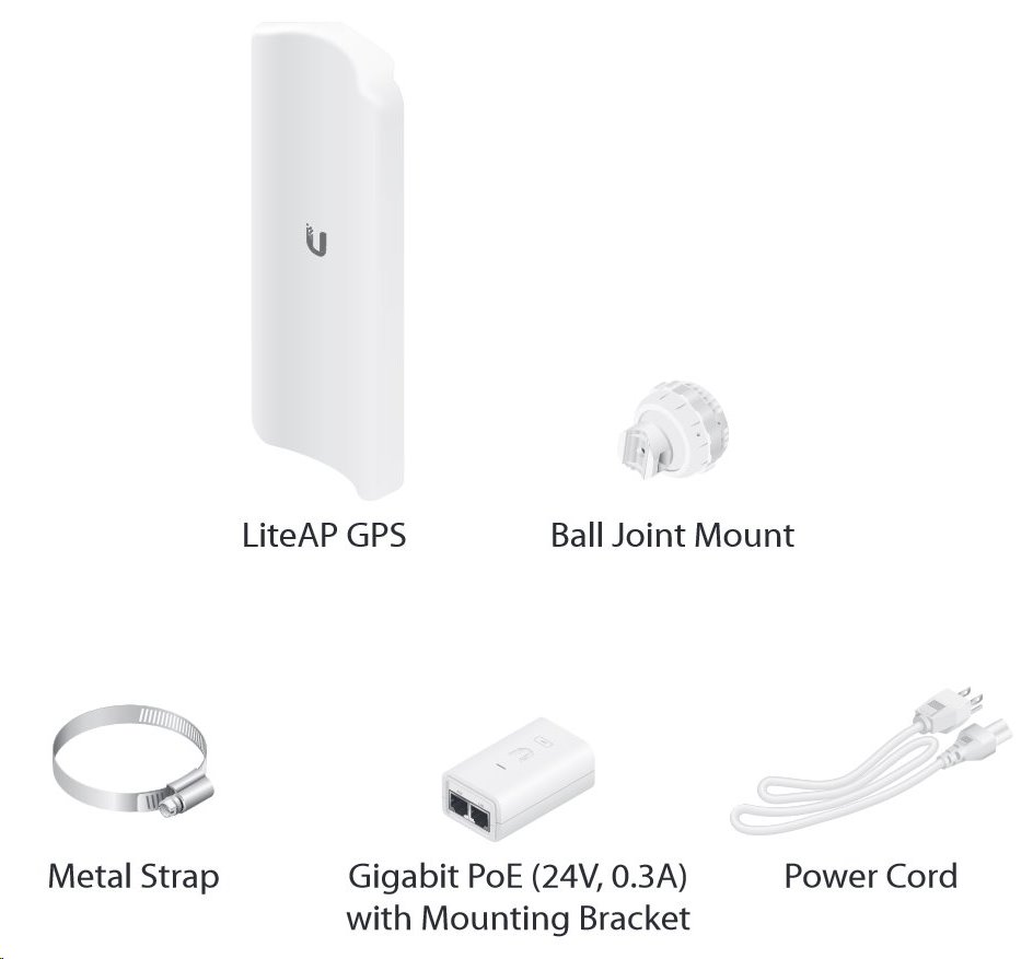UBNT airMAX Lite AP GPS (LAP-GPS) je venkovní 5 GHz přístupový bod s integrovanou sektorovou anténou. LiteAP GPS disponuje vestavěnou sektorovou anténu 2x2 MIMO se ziskem 17 dBi a s vyzařovacím úhlem 90° a GPS modulem. Přesná synchronizace rámce GPS umožňuje společně umístěným zařízením vysílat a přijímat data bez vzájemného ovlivňování, tím dosahuje větší stability sítě.