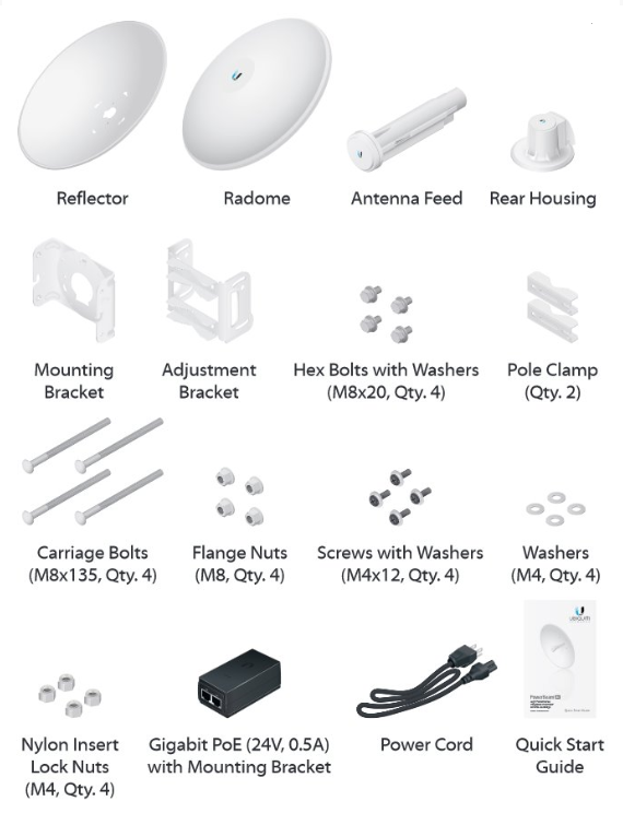 Uvnitř PowerBeamu se nachází výkonný MIPS procesor Atheros 74Kc s frekvencí 720 MHz, kterému sekunduje 128 MB operační paměti typu DDR2 a 16 MB Flash paměť. Síťový port podporuje 10/100/1000 Ethernet a lze po něm jednotku napájet pasivním Gigabit PoE 24 V/0,5 A adaptérem, který je součástí balení (aktivní PoE dle 802.3af není podporováno).