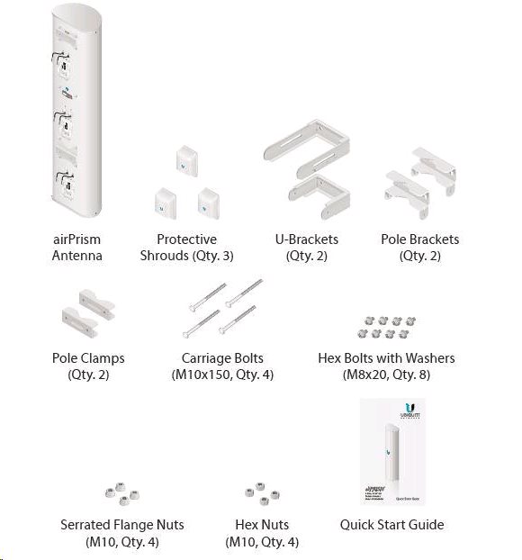 Sektorová anténa obsahuje 3 sloty na připojení jakýchkoliv Rocket jednotek určených pro 5 GHz frekvenční pásmo.