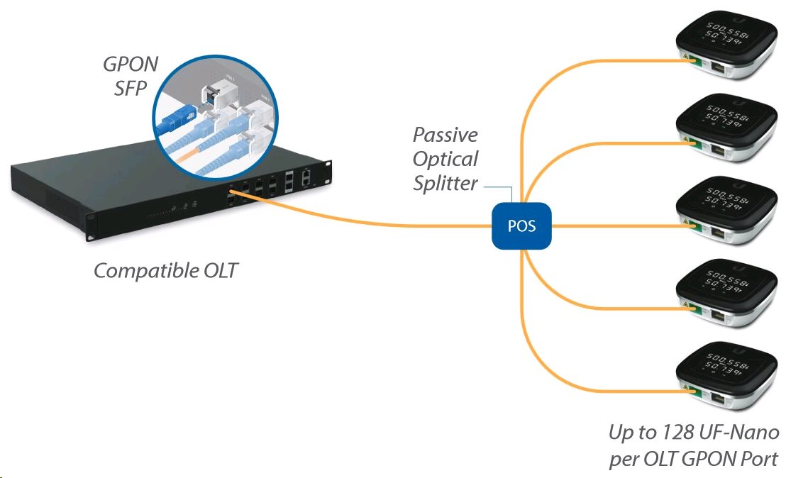 UBNT Fiber Nano je kompaktní a zároveň robustně stavěný GPON koncový prvek s LED displejem pro zobrazení aktuální propustnosti/IP adresy a stavu ethernetu a optické linky. Rychlost PON linky je maximálně (Rx/Tx) 2.488 / 1.244Gbps.Další informace