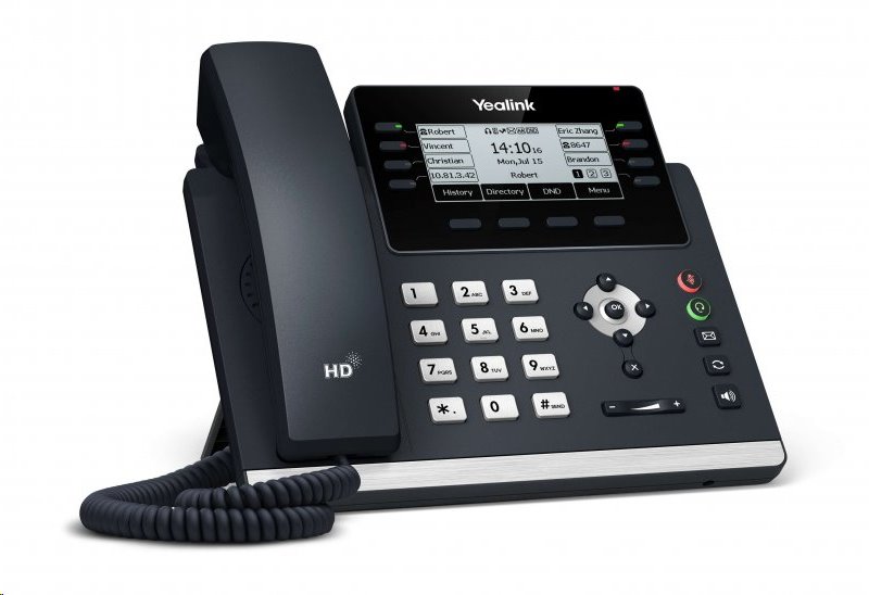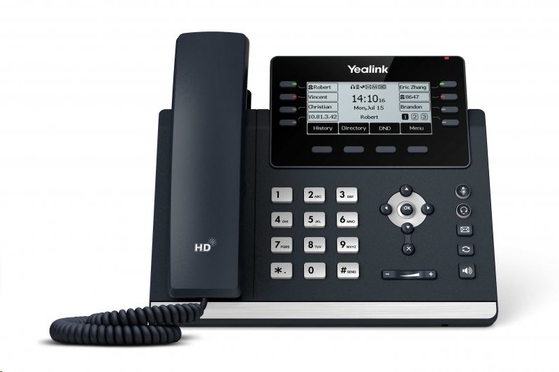 Telefon Yealink SIP-T43U disponuje hned dvanácti SIP účty a duálním 1Gb/s switchem (router & switch). Nabízí 15 programovatelných tlačítek, kterým lze přiřadit jednu z 27 různých funkcí. Telefon disponuje také barevnou indikací pomocí LED diod a několika posvětlenými tlačítky (hlasitý odposlech, sluchátka, ztlumený mikrofon). Podporuje také až 3-cestnou skupinovou konferenci a díky podpoře druhého USB rozhraní k němu snadno připojíte bezdrátová (DECT) sluchátka.